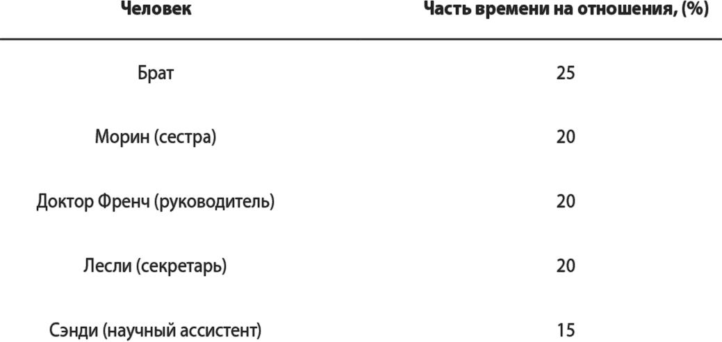 Ранее я уже представила вашему вниманию концепцию о распределении количества времени на отношения: все мы тратим определенное количество времени на коммуникации с другими людьми, и было бы полезно знать, с кем мы общаемся особенно интенсивно.