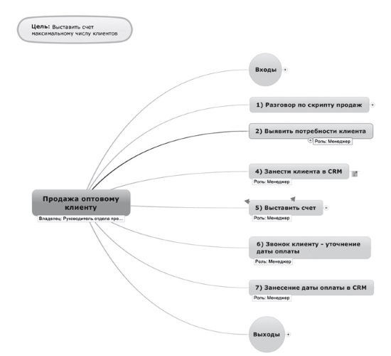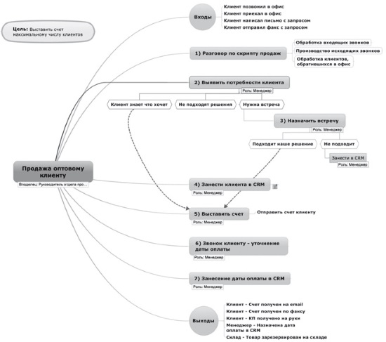 Итак, перейдем к описанию бизнес-процессов в ментальных картах. Я приведу пример на процессе «Продажи оптовому клиенту».
