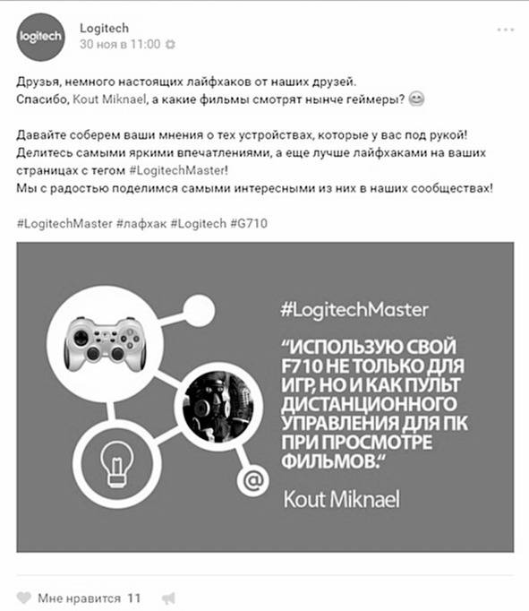 Святослав запустил рубрику #LogitechMaster, в которой публикует полезные советы от активистов с обязательной ссылкой на автора и его аватаркой.