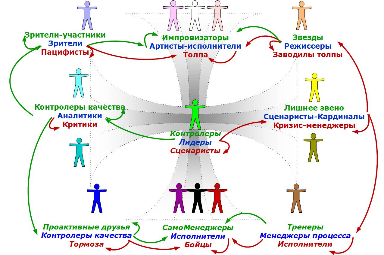 Начиная с этого момента, предлагаю не различать понятия ролей и психотипов. Само слово «роли» носит какой-то казенный, и если не бюрократический, то уж точно стандартный процессный характер. Взял сценарий, прочитал текст, вот вам и спектакль. Но современный бизнес больше напоминает настоящий эмоциональный театр или даже скорее джазовую импровизацию. В нем есть основная тема-сценарий, но каждый может развивать эту тему-сценарий так, как ему подсказывает внутренний голос здесь и сейчас. Поэтому убираю слово «роль» из лексикона заменяя его на «психотип». В терминах джазового оркестра это скорее не «роль», а «музыкальный инструмент».