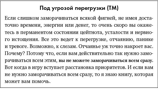 Утром, сожалея о третьем бокале, я прикидываю время, которое у меня есть на выполнение каждого задания (платеж по кредитной карте – завтра, девичник – через три недели). Так я определяю, что?на данный момент в приоритете, и могу переделать список, отделив более срочные дела от менее срочных.