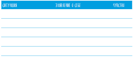 В течение одной недели ведите дневник монолога по приведенному в этом разделе формату. Используйте его, чтобы раскрыть свои глубинные убеждения, идентифицируя ситуации, в которых ваша самооценка особенно слаба (вы чувствуете себя скучным, непривлекательным, никчемным, плохим, неудачливым, тупым, некомпетентным, глубоко ущербным и так далее). Носите его с собой, чтобы вы могли записывать эти ситуации, мысли и чувства как можно ближе к моменту их возникновения, пока они еще свежи в вашей памяти.