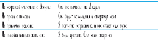 Когда Сьюзи закончила составлять свой список правил, она приступила к списку катастрофических предсказаний, которые принуждали к соблюдению каждого правила: