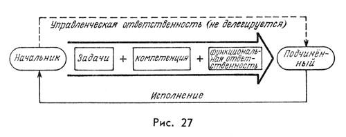 Одновременно с рабочей задачей для ее выполнения должны также делегироваться необходимая компетенция и ответственность в специальной сфере (функциональная ответственность). Начальник сохраняет за собой ответственность за руководство (управленческая ответственность), которая не может быть делегирована.