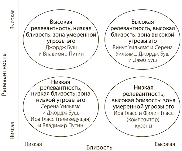 Близость. Какую роль играет другой успешный человек – важен он или его можно легко игнорировать? На людей влияют не только те, кого они видят регулярно или к кому испытывают сильные чувства. Именно поэтому родные братья или сестры соперничают, а дальним родственникам, которые друг друга никогда не видели, делить нечего. Рис. 6.1 показывает, как это работает.