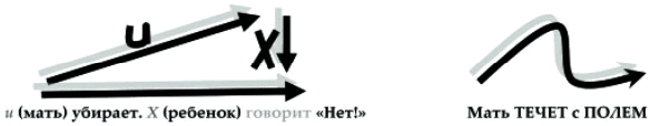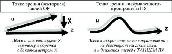 На второй схеме (справа на рисунке 54) вы видите другой способ решения этой проблемы. Как только я начинаю двигаться в направлении Z и появляется сопротивление X, я могу отпускаться и чувствовать: «Ага! Я замечаю, что являюсь u с собственным умом, и есть X, которое не полностью согласно с тем, что я делаю, и потому я могу отпуститься и следовать пространственно-временному сновидению и его волнистому, извилистому пути». Иными словами, держите в уме, что вы хотите делать и позволяйте природе доставлять вас к цели.