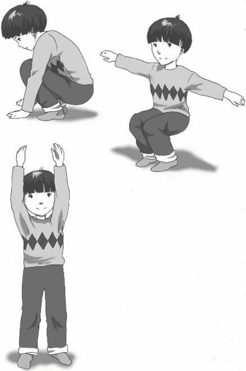Примечания. В ходе выполнения этого упражнения дети учатся снимать напряжение мышц с помощью целенаправленных движений и активной смены позы тела. Рекомендуется для детей от 3 лет.