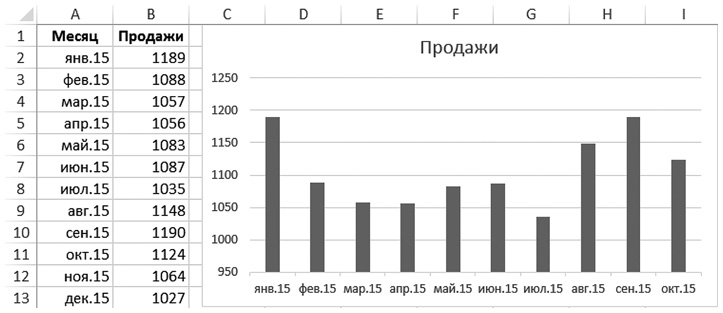 Возможно, вам приходится обновлять некоторые диаграммы раз в месяц, квартал или с другой периодичностью. В примере вам нужно добавить данные за ноябрь и декабрь в диаграмму: