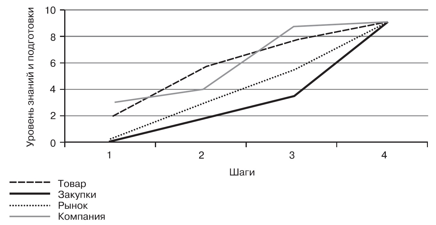 Стадия изучения товара и рынка (в том числе знакомство с профессиональной средой) — самое подходящее время для того, чтобы обогатить свою копилку знаний сведениями об организации процесса закупок. В этом могут помочь: опыт предшественников, советы и рекомендации коллег, чтение литературы, участие в профессиональных тренингах и семинарах, ну и, конечно, специализированные книги.