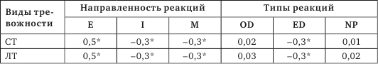 Подводя предварительные итоги, можно отметить, что высокая ситуативная тревожность блокирует такой тип реакции, как фиксация на препятствии, но по-разному актуализирует стремление к самозащите и к удовлетворению потребности, т. е. либо повышает, либо понижает эти типы реакций. Личностная тревожность, напротив, блокирует стремление к самозащите и по-разному актуализирует фиксацию на препятствии и удовлетворении потребности.