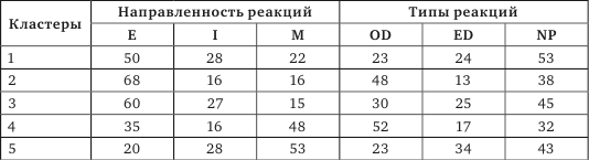 Различия между первым, третьим и пятым кластерами по направленности и типам реакций на фрустрацию