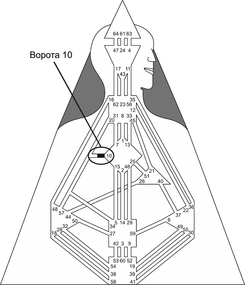 Ворота 10 – одни из наиболее значимых в Дизайне Человека (рис. 60). Они взаимосвязаны с Эго и ассоциируются с получением новых возможностей.