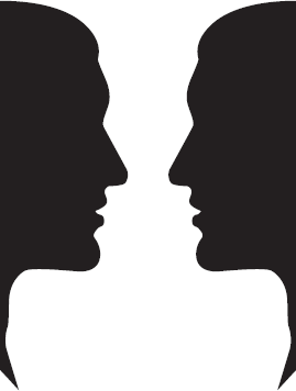 Такие картинки психологи называют «двусмысленными фигурами», так как они сбивают с толку наши органы восприятия (глаза, мозг и нервную систему), которые изо всех сил пытаются определить, что мы видим. Наше сознание старается понять, какое из изображений «правильное», какое из них имеет смысл. Когда на самом деле на этой картинке одновременно изображено и то и другое, то есть и черные лица, и белая ваза, мы не способны увидеть и то и другое изображение одновременно, хотя изо всех сил пытаемся это сделать, несмотря на двусмысленность.