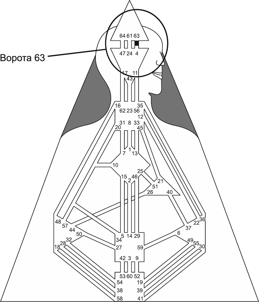Энергия Ворот 63 (рис. 113) ответственна за логику, сами же они – нечто вроде контрольного пункта, где все подвергается сомнению и непременно требует доказательств.