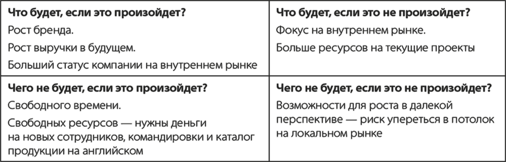 Давайте рассмотрим небольшой пример – решение компании (например, издательства) о выходе на международный рынок.