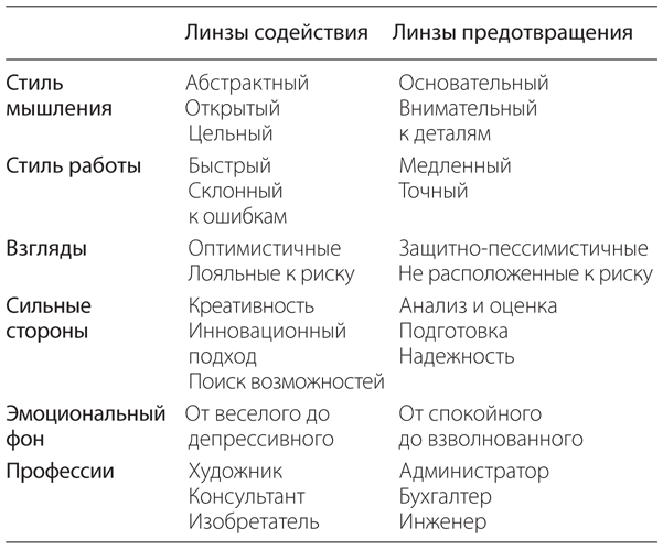 Таблица 7.1. Ваш знакомый смотрит через линзы содействия или предотвращения?
