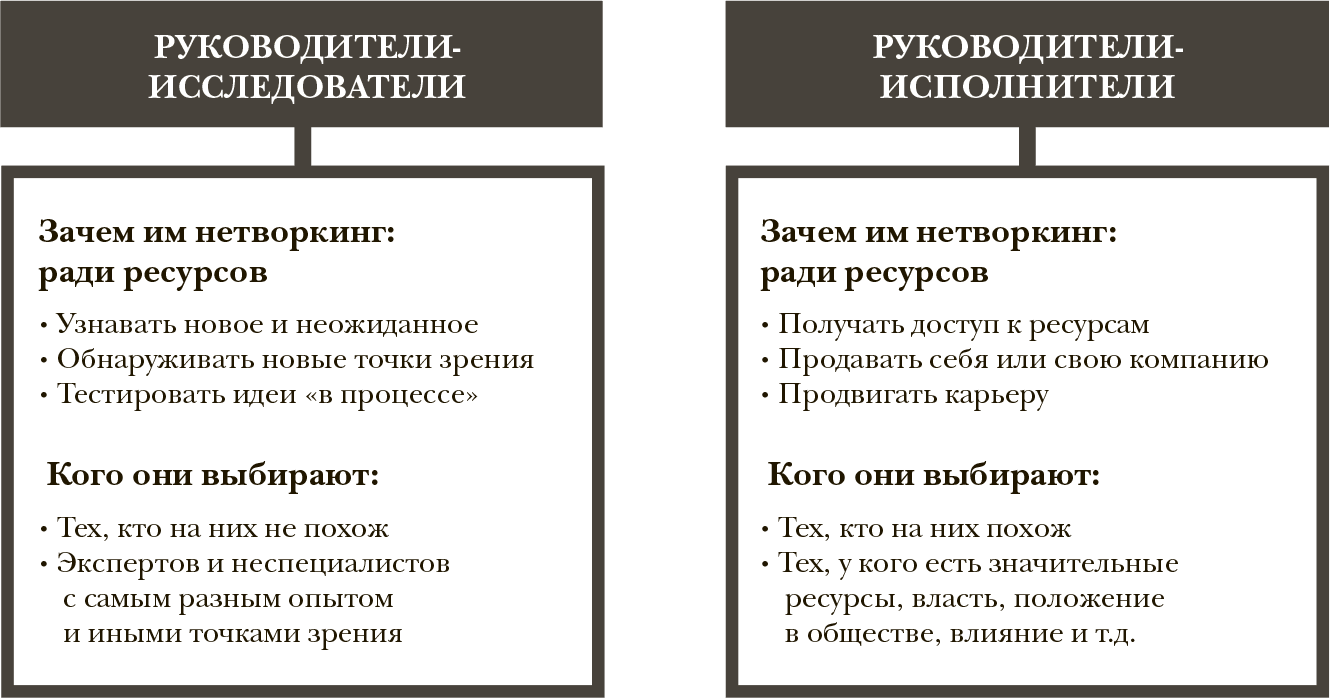 Рисунок 5-1. Различия в нетворкинге между руководителями исследовательского и исполнительского склада