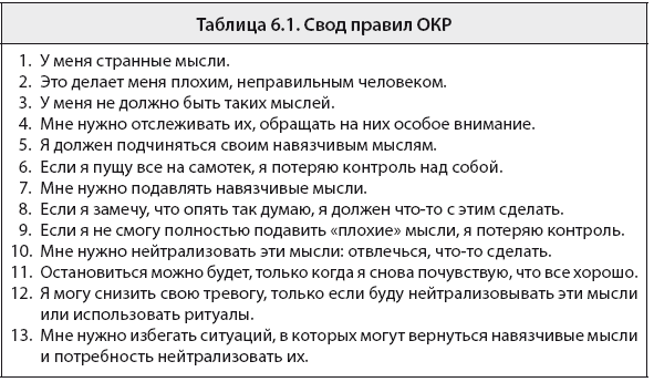Люди с ОКР придерживаются определенного набора правил, который требует от них наблюдать за своими мыслями, оценивать их в как можно более негативном ключе и использовать техники самоконтроля, которые только усугубляют навязчивые состояния. Изучите приведенный ниже свод правил и постарайтесь понять, какими из них пользуетесь вы сами.