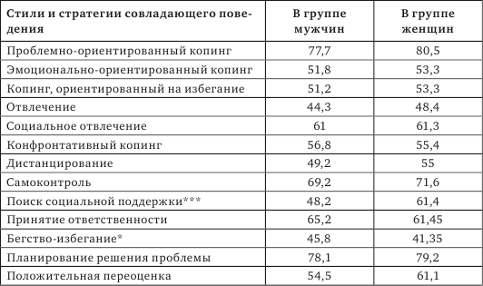 Иначе говоря, эмоциональные выплески, отреагирование трудных ситуаций, переживания, самокопание, по-видимому, не приводят к облегчению эмоционального состояния у женщин, мешают в разрешении проблем, уводят от преодоления трудностей. Следовательно, на данном этапе жизненного цикла семьи мы можем приравнивать эмоционально-ориентированный копинг по его значимости для социально-психологической адаптированности к стратегии бегства-избегания.
