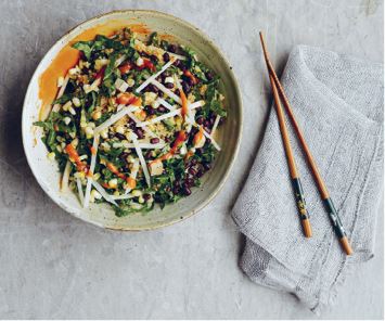 Салат из пряного мисо, имбиря, джикамы, кукурузы, порезанного кале