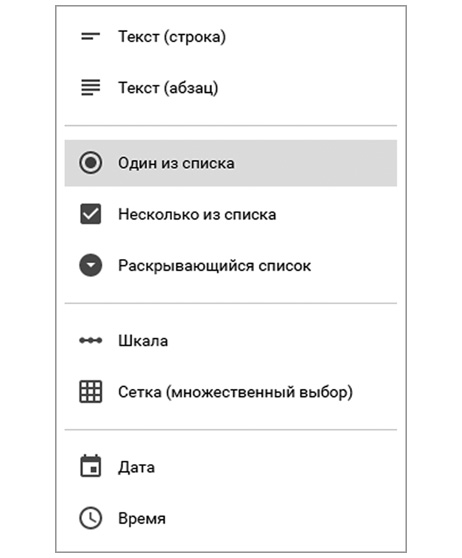 Дата и время – ответы, которые могут быть введены только в соответствующем формате. Подойдут для вопросов вида «В какой день вам удобнее присутствовать на обучении?» (отмечу, что если нужно выбрать только из двух-трех вариантов дат, то лучше все-таки использовать тип «Ответ из списка»).