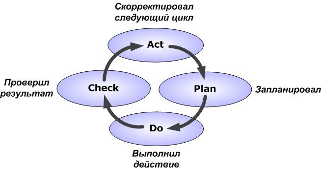Вернемся ненадолго в современный бизнес и посмотрим на происходящие в нем процессы глазами общепризнанных методологий. Наиболее близкой к естественным природным процессам, пожалуй, является цикл Plan-Do-Check-Act (PDCA) – минимальная последовательность действий, направленных на совершенствование любой системы.