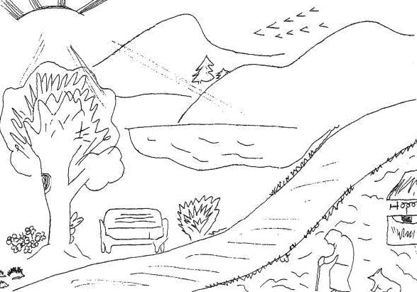 На консультацию Аня принесла рисунок, где главной героиней была сгорбленная старушка с палочкой (рис. 1). И хотя на рисунке видны горы и есть дорога вперед, старушка, по словам Ани, очень устала, хочет вернуться назад, сесть на скамеечку и отдохнуть. Это высказывание свидетельствовало о большой физической и психологической усталости самой девочки.