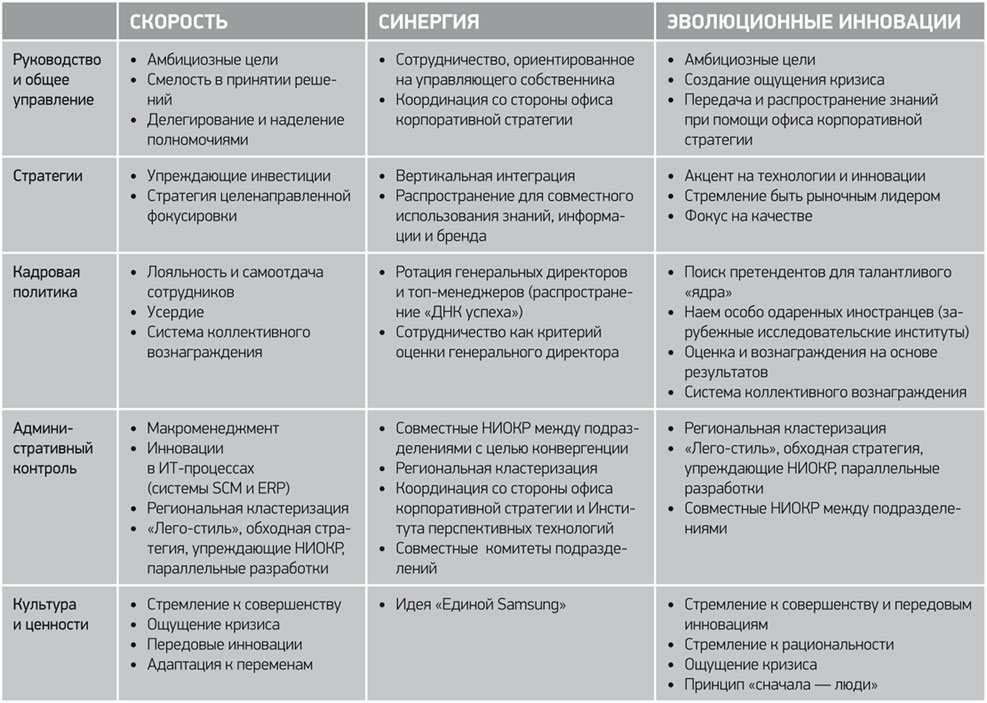Таблица 9.1. Три стержневые компетенции и пять элементов управления Samsung