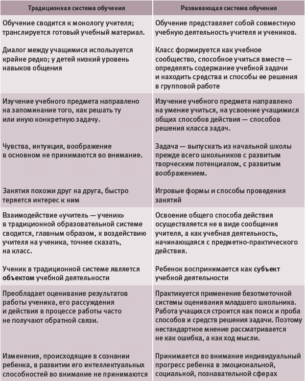 Таблица 15. Отличия традиционной и развивающих систем обучения