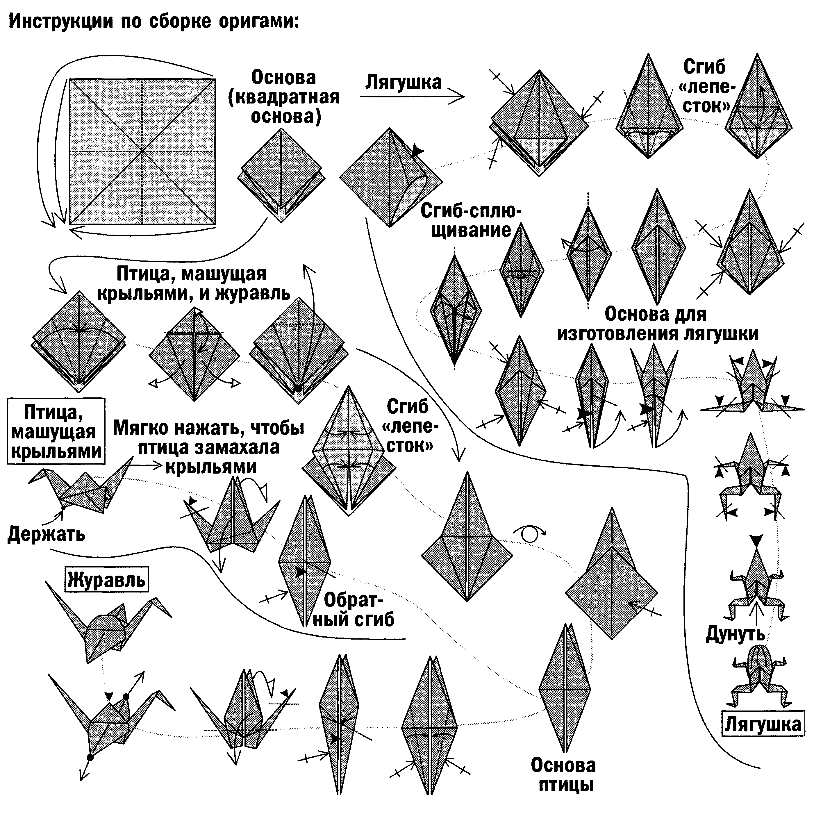 Сравнив эти сложные инструкции с простыми первоначальными инструкциями по сборке оригами (см. страницу 96), вы сможете достаточно легко понять, какой информации не хватает. Участники, находившиеся в сложных условиях, не знали, что одна из стрелок в инструкции означала «повторить», а другая — «развернуть».