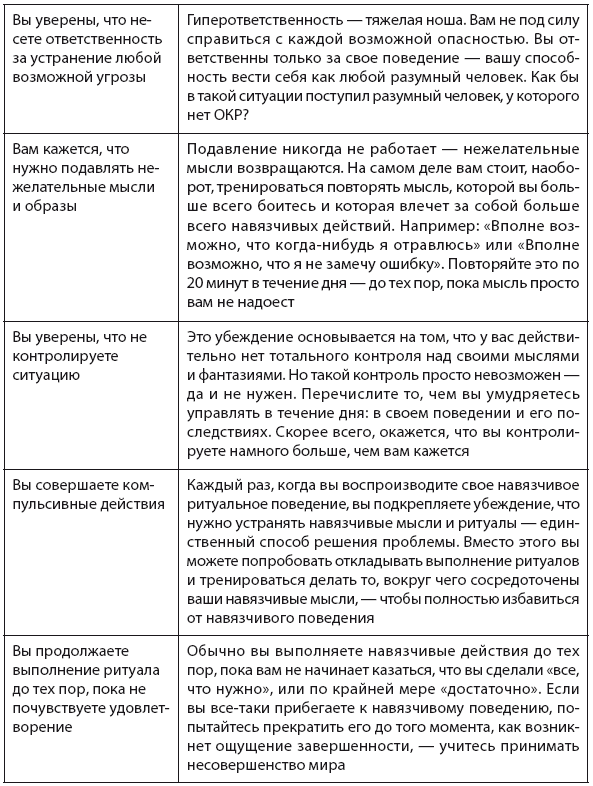 ОКР может лишать вас сил. Кроме того, вы можете стыдиться его и быть чрезмерно самокритичными. Постарайтесь не забывать, что ОКР развилось из когда-то очень важной защитной способности предугадывать опасность – просто в вашем случае она уж слишком развита. Ваше ОКР никому не навредит, в нем нет ничего аморального. И даже если это расстройство мучило вас долгие годы, вы сможете улучшить качество своей жизни – если обратитесь к тому, кто знает, как вам помочь.