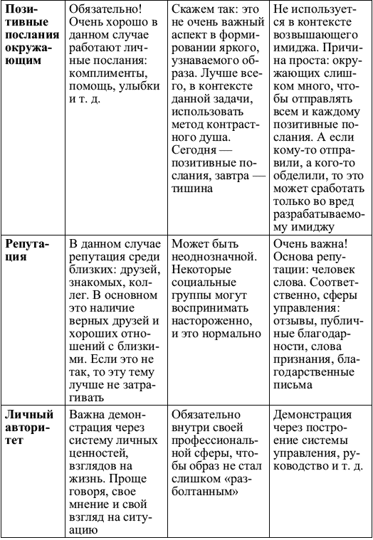Итак, очень важно подобрать инструменты под каждую задачу. Из предыдущих глав мы уже знаем, какие есть инструменты и как можно их использовать. Обратимся к конкретике. Что делать, если вам нужно создать авторитетный имидж. Как быть, если задача – вызвать доверие.