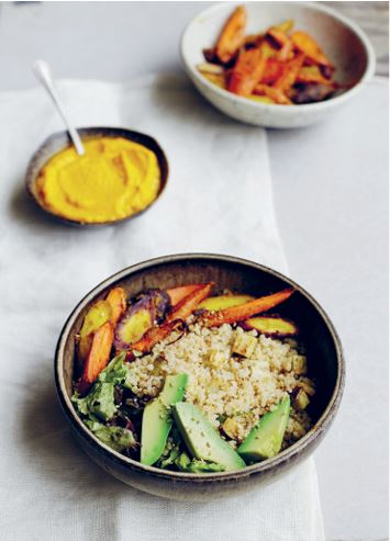 После долгих лет проб и совершенствования рецептов я полюбила жареную морковь. Мне никогда раньше она не нравилась, но я поняла, что если добавить порошок карри и кокосовое масло, устоять будет трудно. А в сочетании с моими другими любимчиками – мисо, авокадо и киноа – она еще лучше!