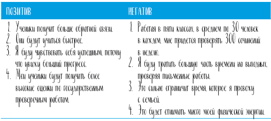 Для начала он переписал правило в более гибкой форме: «Я бы хотел, чтобы мои ученики по возможности выполняли два письменных задания в неделю». Затем он обдумал последствия.
