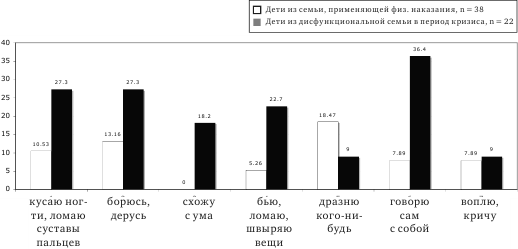 Кроме того, подверженные длительному и тяжелому стрессу, дети из дисфункциональных семей ищут разные способы совладания. В арсенале частого использования более чем у половины детей находится множество беспорядочно выбираемых стратегий (около 17).