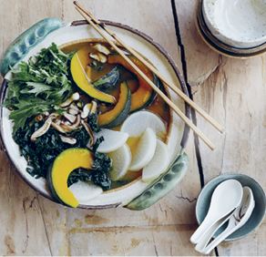 Японский горшочек с набе рёри (донабе) 土鍋 となへ (набемоно) 鍋物, なへ物 овощное набе из тыквы кабоча и дайкона