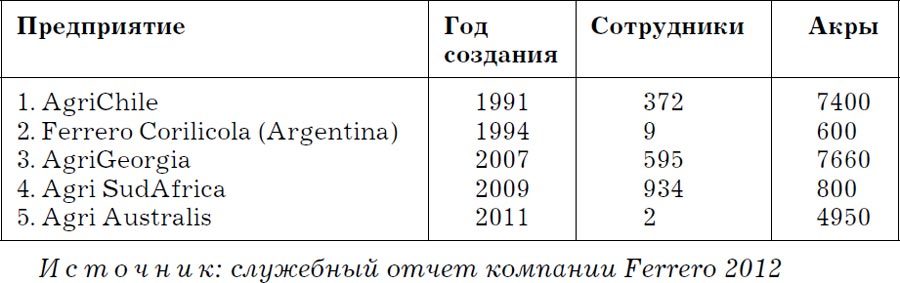 Только семейный бизнес может позволить себе такого рода долгосрочные инвестиции и продемонстрировать дальновидность компании, которая не участвует в торговле на фондовой бирже и не должна отвечать требованиям инвесторов. Сотни тысяч фермеров в Турции, Грузии, Южной Америке, а вскоре и в Южной Африке и Австралии могут возлагать надежды на лучшее будущее, глядя на баночку с Nutella. Эти 6,6 миллиона деревьев, посаженных по всей планете, являются непосредственным вкладом в борьбу с загрязнением воздуха углекислым газом. Эта маленькая зеленая революция, которая происходит благодаря распространению лесного ореха в Южном полушарии, который древние римляне считали универсальным символом счастья, захватывает весь мир.