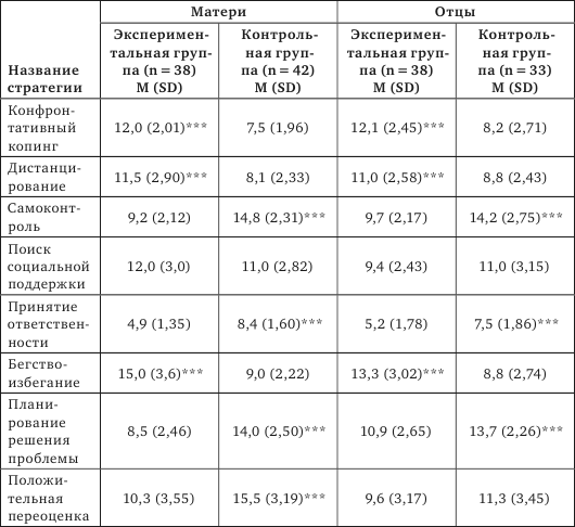 Оказалось, что собственные проблемы, конфликты и постоянное напряжение, связанное с ребенком, заставляют родителей использовать различные стратегии совладающего поведения. Характер выявленных различий представлен в таблице 3.